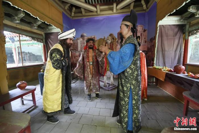 甘肅蘭(lan) 州五泉山蠟像館內(nei) 展示“粟特商人”的蠟像場景。楊豔敏 攝