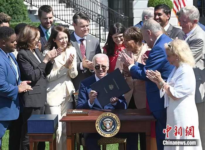 資料圖:當地時間8月9日,美國總統拜登在白宮簽署《芯片和科學法案》。 中新社記者 陳孟統 攝