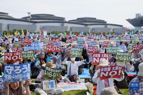 5月3日,民眾(zhong) 在日本東(dong) 京有明防災公園舉(ju) 行守護憲法遊行集會(hui) 。新華社記者 張笑宇 攝