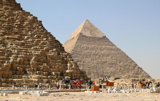 5月1日,遊客在埃及吉薩金字塔群景區遊覽。(新華社記者隋先凱攝)
