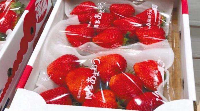 圖為(wei) 空運日本草莓被驗出農(nong) 藥氟尼胺超標。圖片來源:台灣《中國時報》。