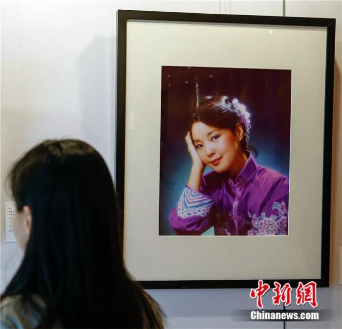 一位女士在北京華辰秋拍預展現場觀看二十世紀八十年代拍攝的鄧麗(li) 君肖像照。張浩 攝
