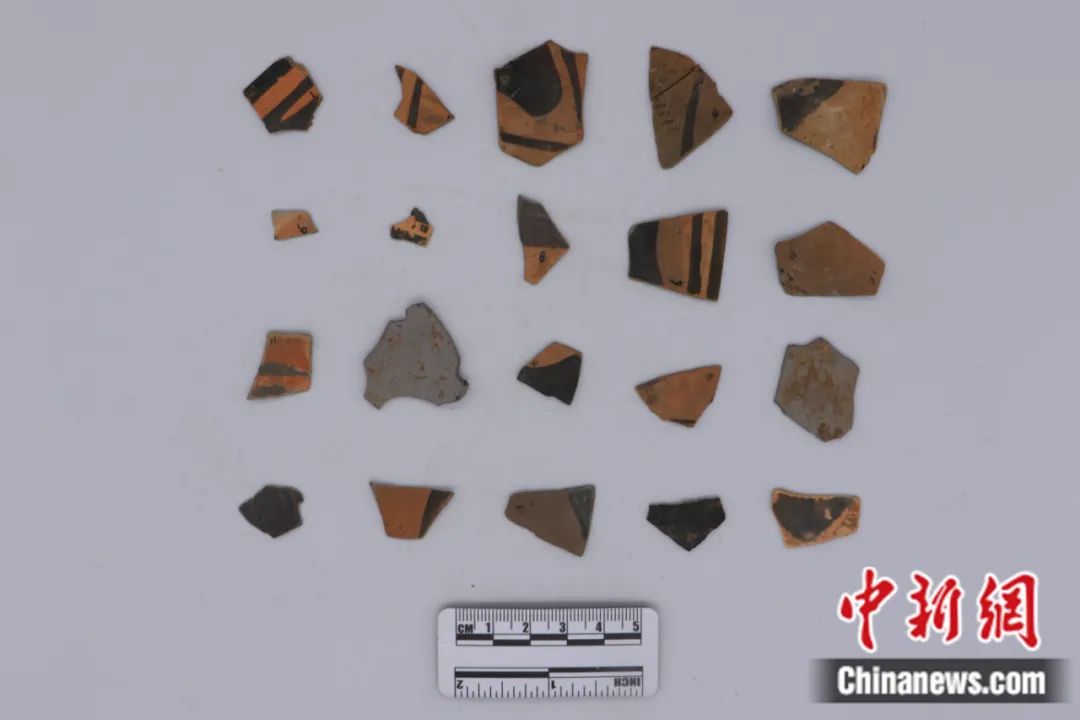 屈家嶺遺址出土的蛋殼黑彩陶片。湖北省文物考古研究院 供圖