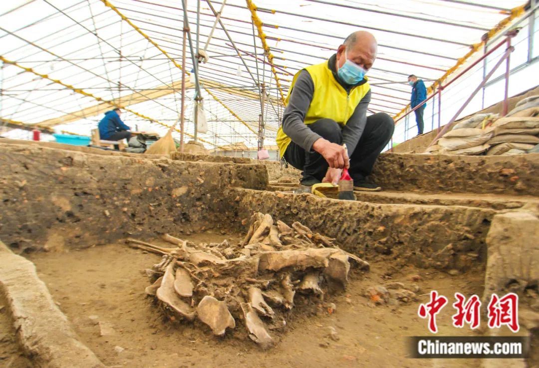 工作人員在河南南陽黃山遺址考古發掘現場進行清理作業(ye) 。高嵩 攝