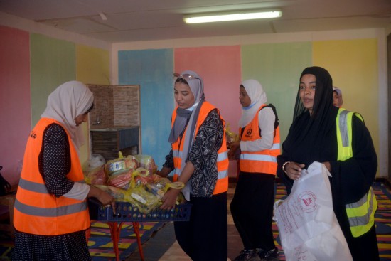 5月2日,在埃及南部阿斯旺省,工作人員為(wei) 逃離蘇丹進入埃及的難民準備救濟包裹。新華社發(拉德萬(wan) 攝)