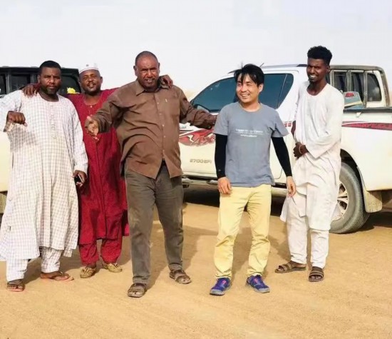 嶽遠誌(右二)在蘇丹與(yu) 當地朋友合影。受訪者供圖