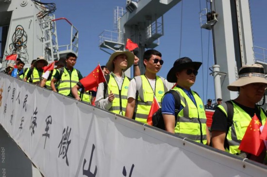 4月29日,從(cong) 蘇丹撤離的中國公民乘坐中國海軍(jun) 微山湖艦抵達沙特阿拉伯吉達港。新華社記者王海洲攝