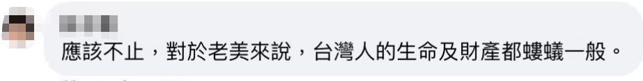 “對於(yu) 老美來說,台灣人的生命及財產(chan) 都螻蟻一般。”