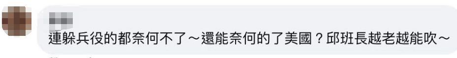 對於(yu) 如此糊弄且不堅決(jue) 地表態,民眾(zhong) 留言評論,“全台灣誰不知道美國想做什麽(me) 事都是民進黨(dang) 默許的”“連躲兵役的都奈何不了,還能奈何的了美國?”“先把部隊的問題解決(jue) 好吧,隻會(hui) 叭叭叭”“嘴巴很厲害,實際跑最快 !”