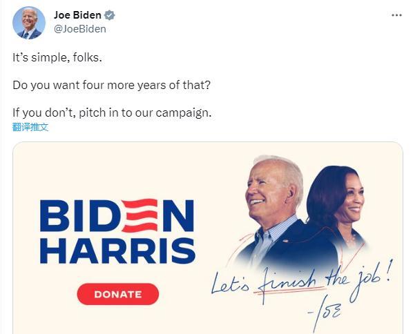 CNN注意到,在特朗普的直播結束後不久,美國總統拜登在社交媒體(ti) 上發出了政治籌款呼籲,並配文稱,“很簡單,夥(huo) 計們(men) 。 你還想再那樣過四年嗎?如果你不喜歡,請參與(yu) 我們(men) 的競選活動。”