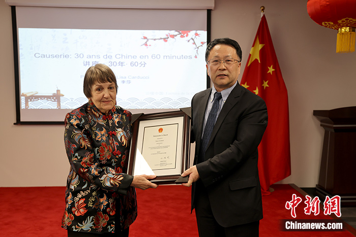 中新社蒙特利爾5月14日電 (記者 餘(yu) 瑞冬)加拿大著名作家、詩人、漢學家李莎·卡爾杜齊(Lisa Carducci)13日在中國駐蒙特利爾總領事館獲頒中國駐加拿大使館2022年度“大使獎”。