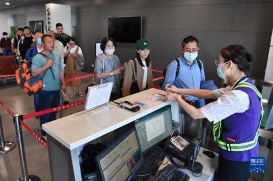 5月13日,乘坐西安-烏(wu) 魯木齊-阿什哈巴德首趟航班的旅客準備登機。