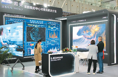 日前,在江蘇南京智慧城市公共安全展現場,雷曼展台安防監控中心可視化解決(jue) 方案吸引觀眾(zhong) 駐足。