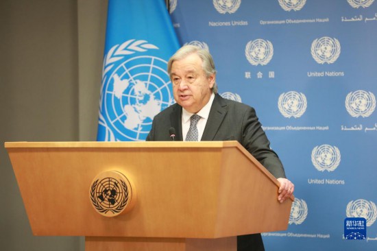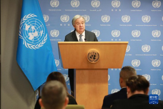 5月17日,在位於(yu) 紐約的聯合國總部,聯合國秘書(shu) 長古特雷斯在記者會(hui) 上講話。新華社記者謝鍔攝