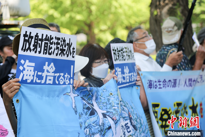 5月16日,日本民眾(zhong) 在眾(zhong) 議院第二議員會(hui) 館前舉(ju) 行集會(hui) ,表達對日本政府和東(dong) 京電力公司持續強推福島核汙染水排海計劃的強烈反對。 中新社記者 朱晨曦 攝