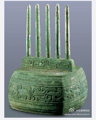被稱為(wei) “西周路由器”的文物“雲(yun) 紋銅五柱器”。圖片來源:安徽博物院微博