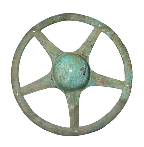 三星堆出土文物中,青銅太陽輪形似如今的“方向盤”,其用途引來了種種猜測:有研究者認為(wei) 這是車輪,還有觀點認為(wei) 是用於(yu) 軍(jun) 事作戰的盾牌上的盾飾。多數意見認為(wei) ,這種形製的器物應即是“太陽形器”。它是常設在古蜀國神廟中的神器,或用於(yu) 祭祀儀(yi) 式。