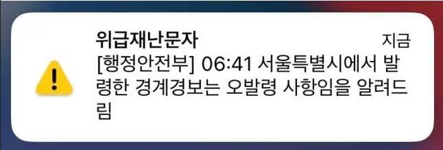 7時3分,首爾市民再次收到消息:“首爾特別市發布的警戒警報屬於(yu) 誤發事項,特此通知。”