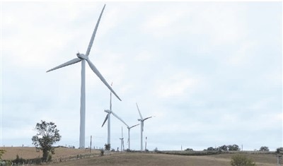 圖為(wei) 中廣核歐洲能源公司位於(yu) 法國阿薩克風電場的風力發電機。
