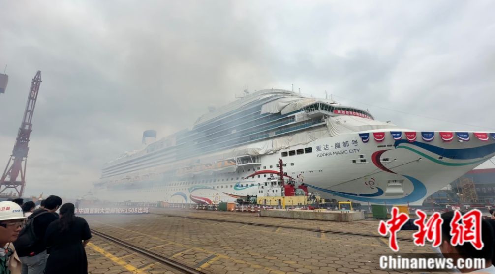 看,這艘身係“敦煌飛天彩帶”楚楚動人的我國首艘國產(chan) 大型郵輪“愛達·魔都”號,今日盛裝出塢!