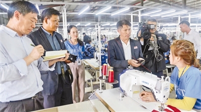 圖為(wei) 中老媒體(ti) 記者在萬(wan) 象賽色塔綜合開發區進行聯合采訪。
