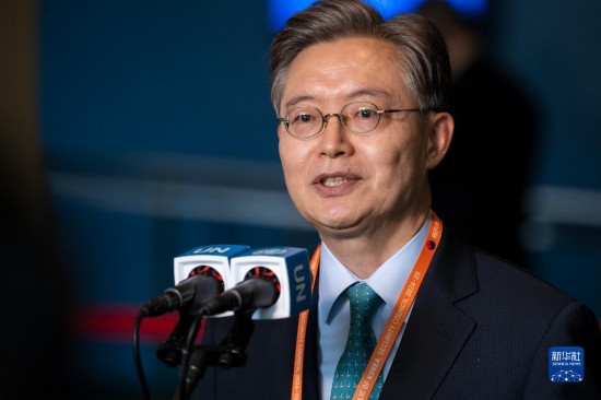 6月6日,在位於(yu) 紐約的聯合國總部,韓國常駐聯合國代表黃浚局在韓國當選聯合國安理會(hui) 非常任理事國後在記者見麵會(hui) 上講話。新華社發(聯合國供圖/洛伊·費利佩攝)