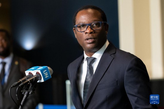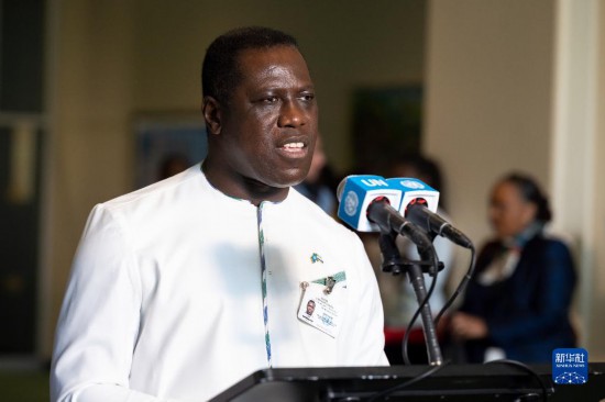 6月6日,在位於(yu) 紐約的聯合國總部,塞拉利昂外交與(yu) 國際合作部長弗朗西斯在塞拉利昂當選聯合國安理會(hui) 非常任理事國後在記者見麵會(hui) 上講話。新華社發(聯合國供圖/洛伊·費利佩攝)