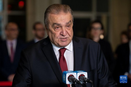 6月6日,在位於(yu) 紐約的聯合國總部,阿爾及利亞(ya) 常駐聯合國代表阿馬爾·本賈瑪在阿爾及利亞(ya) 當選聯合國安理會(hui) 非常任理事國後在記者見麵會(hui) 上講話。新華社發(聯合國供圖/洛伊·費利佩攝)
