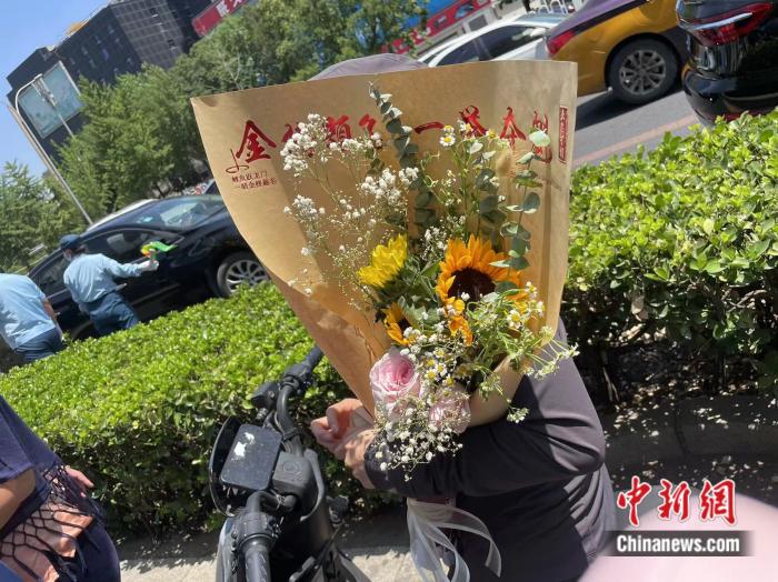 另一位送考家長梁女士為(wei) 其弟弟買(mai) 了一束98元的鮮花。她認為(wei) ,這種方式能讓弟弟走出考場後更直接地感受到家人的關(guan) 心和祝福。