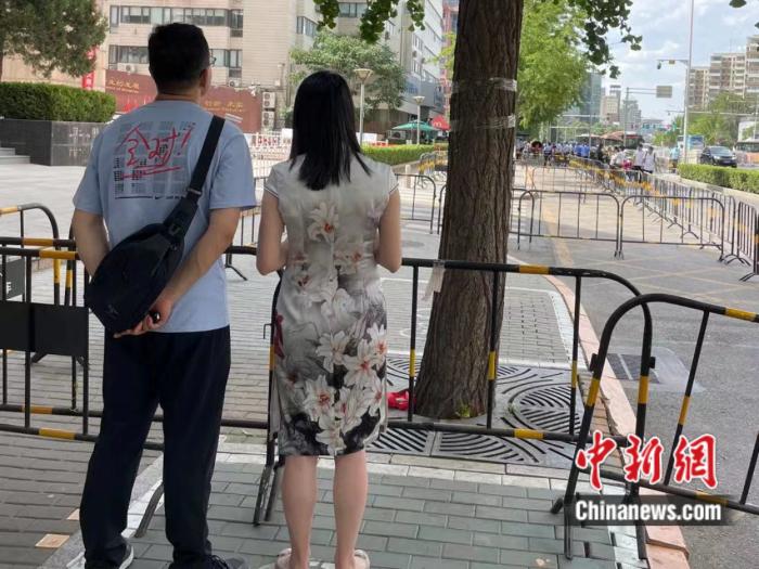 6月7日上午11點多,距離語文考試結束不到半小時,北京市海澱區中國人民大學附屬中學考點附近,已經聚集許多等待考試結束的家長。