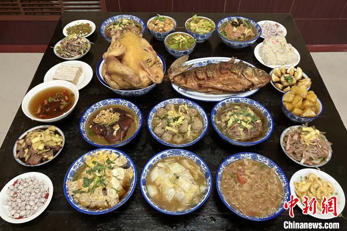 “四八席”有24道菜。即:四鋪桌、四壓桌、兩(liang) 大件、八大碗、四小碗、兩(liang) 糕點。 張文諳 攝