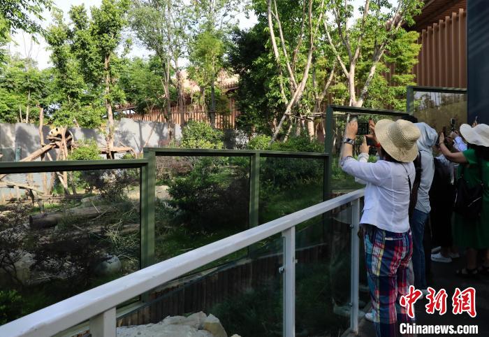 中新網成都6月11日電 (王利文 堯欣雨)“每一隻大熊貓都各有特色,惹人喜愛!”在成都大熊貓繁育研究基地(簡稱熊貓基地),美國華視總裁楊蓮花用手機記錄下圈舍中“踱來踱去”的大熊貓“安安”和一旁趴地酣睡的大熊貓“晶亮”,不禁感歎。經過熊貓基地的文創商店,她一口氣買(mai) 下“蓉寶”擺件等三款產(chan) 品,準備帶給親(qin) 友。
