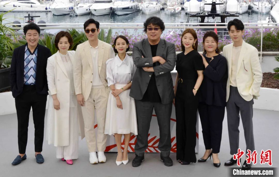 韓國影片《寄生蟲》主創團隊亮相第72屆戛納電影節。李洋 攝