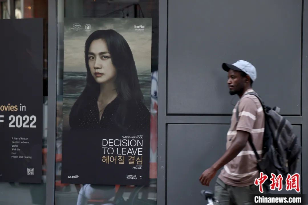 韓國影片《分手的決(jue) 心》亮相第47屆多倫(lun) 多國際電影節,行人從(cong) 主演湯唯的海報前經過。餘(yu) 瑞冬 攝