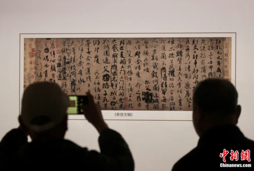北京,參觀者觀賞顏真卿《祭侄文稿》(複製品)。易海菲 攝