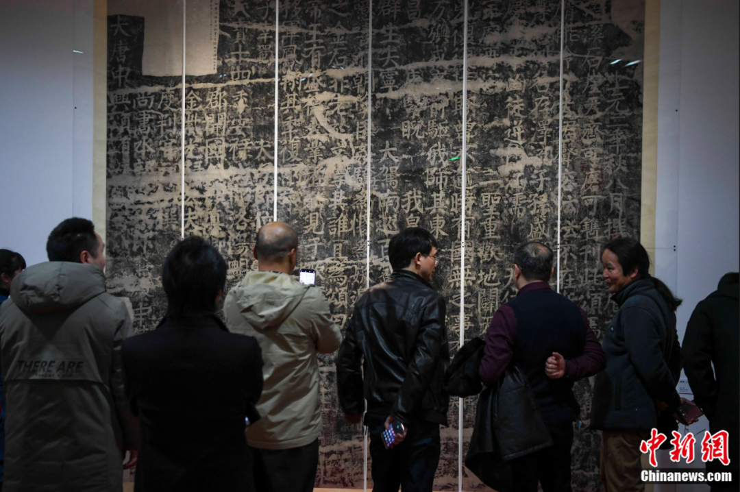 湖南長沙,觀眾(zhong) 參觀唐代顏真卿《大唐中興(xing) 頌》石刻拓片。楊華峰 攝