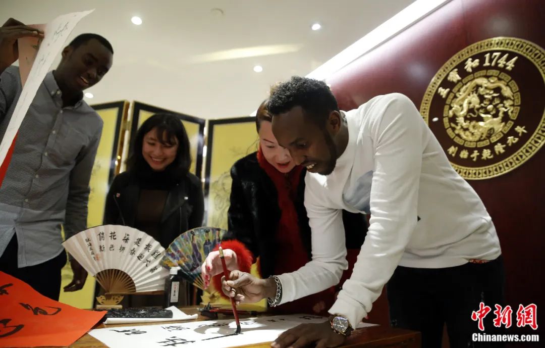 上海,留學生在老師的指導下體(ti) 驗書(shu) 法感受中國傳(chuan) 統文化。湯彥俊 攝