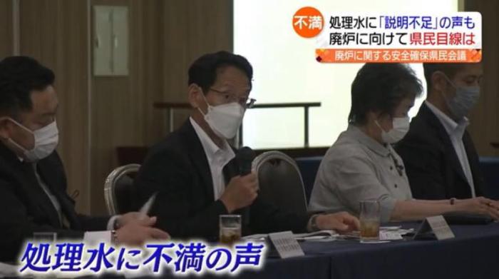 當地時間13日下午,日本福島縣民眾(zhong) 召開會(hui) 議,參加者針對日本政府計劃在今夏正式向大海排放核汙水一事表示不滿。圖片來源:福島中央電視台視頻截圖