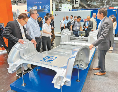 中國壓鑄模具製造商廣型科技的展台前,也吸引了很多客戶拍照谘詢。該公司已與(yu) 全球多家知名車企建立了合作關(guan) 係,成為(wei) 全球新能源汽車製造領域的知名供應商之一。