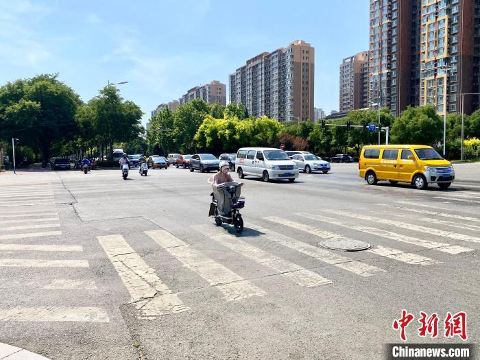 圖為(wei) 石家莊街頭,頂著烈日出門的市民穿著防曬服,戴著遮陽帽。李曉偉(wei) 攝