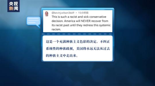 還有不少網友認為(wei) ,最高法院的這一裁定充斥著濃厚的“種族主義(yi) ”色彩,“不糾正係統性的種族歧視,美國將永遠無法從(cong) 過去的種族主義(yi) 中走出來。”