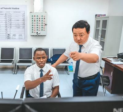 毛鑫是非洲之星鐵路運營公司運輸部內(nei) 羅畢車站運轉主任,他與(yu) 徒弟彼得·恩堅加一起製定調度計劃、調控列車運轉。“我們(men) 無保留地把國內(nei) 的技術標準帶到肯尼亞(ya) ,學員已達到國內(nei) 車站同等作業(ye) 標準。”毛鑫說,幫助肯尼亞(ya) 建設第一條現代化鐵路,是他人生中的亮點。彼得表示,自己從(cong) 師父身上學到了許多專(zhuan) 業(ye) 技術,未來他將把知識傳(chuan) 授給更多人。