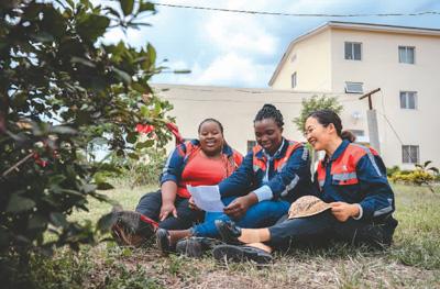 中國師父陳玲(右)是非洲之星鐵路運營公司工電部電子設備檢修工區工長。在肯尼亞(ya) 工作4年來,她見證了女學員們(men) 電務技術的成長。“現在她們(men) 都能獨當一麵。”陳玲說。朱迪思(左)是陳玲的學員之一,她從(cong) 師父那裏獲得的不僅(jin) 是技術,工作間隙對飲食、文化等多維度的交流同樣讓她受益匪淺。“我們(men) 之間是師徒,更是姐妹。”朱迪思說。圖為(wei) 陳玲在休息時教學員唱中文歌曲。