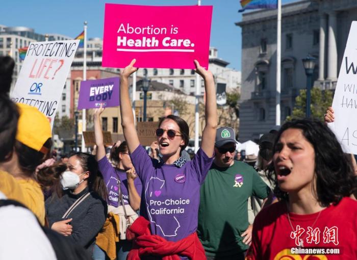 資料圖:當地時間2022年6月24日,美國舊金山民眾(zhong) 聚集在市政廳前,抗議美聯邦最高法院推翻“羅訴韋德案”。中新社記者 劉關(guan) 關(guan) 攝