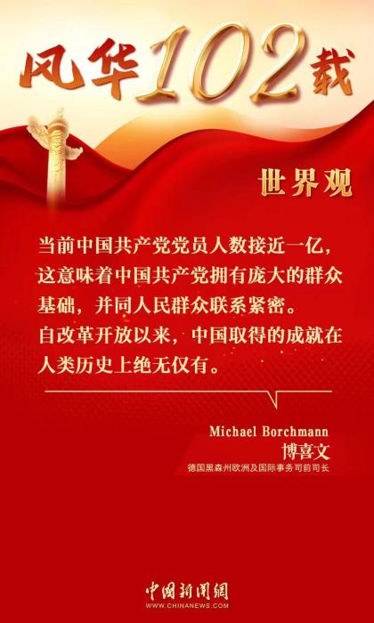中新網7月5日電 (陳天浩)2023年是中國共產(chan) 黨(dang) 建黨(dang) 102周年。近日,德國黑森州歐洲及國際事務司前司長博喜文(Michael Borchmann)在接受中國新聞網專(zhuan) 訪時表示,中國共產(chan) 黨(dang) 的成功離不開同人民群眾(zhong) 的緊密聯係。