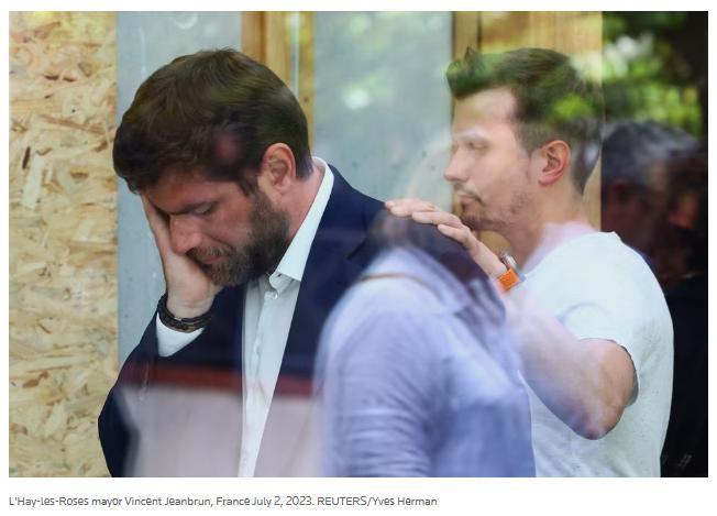 當地時間7月2日,家中遭襲擊後的法國拉伊萊羅斯市市長讓布蘭(lan) 。圖片來源:路透社報道截圖