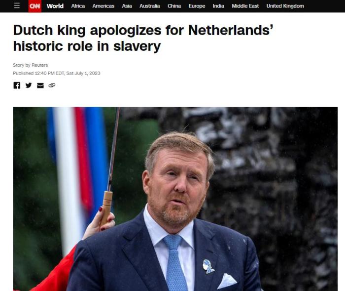 據美國有線電視新聞網(CNN)報道,荷蘭(lan) 國王威廉-亞(ya) 曆山大當天出席了紀念荷蘭(lan) 廢除奴隸製160周年的儀(yi) 式,並作出了上述表態。