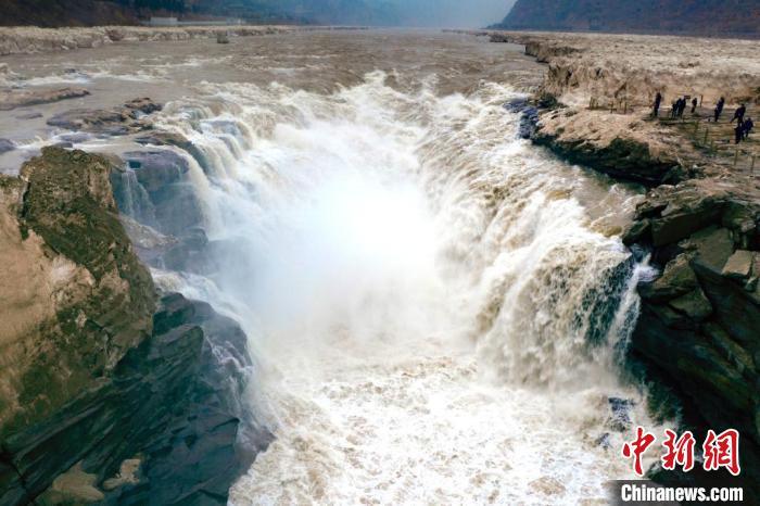 2023年2月11日,陝西延安,壺口瀑布波濤奔騰。(無人機照片) 霍勇 攝