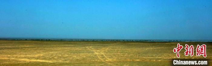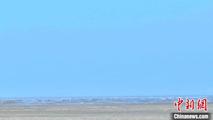 在海市蜃樓觀測點,沙漠上出現一片湖麵,隱約能看到湖麵上波光粼粼,水波隨風翻滾。 孜瓦爾古麗(li) ·卡德爾 攝