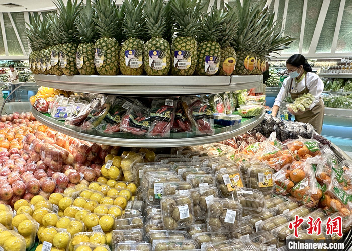 圖為(wei) 菲律賓大馬尼拉地區馬卡蒂市,超市工作人員在整理水果。 中新社記者 張興(xing) 龍 攝